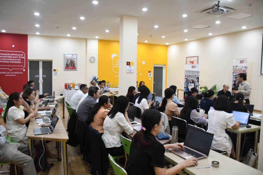 Rassemblés à l’espace intégré francphone (CEF/CNF) de Hô Chi Minh-Ville, Vietnam, une trentaine de participants engagés ont pris part, du 18 au 20 décembre, à un atelier de formation régional portant sur la méthodologie de conception, la production et le partage des ressources éducatives libres (REL), organisé par l’AUF.
