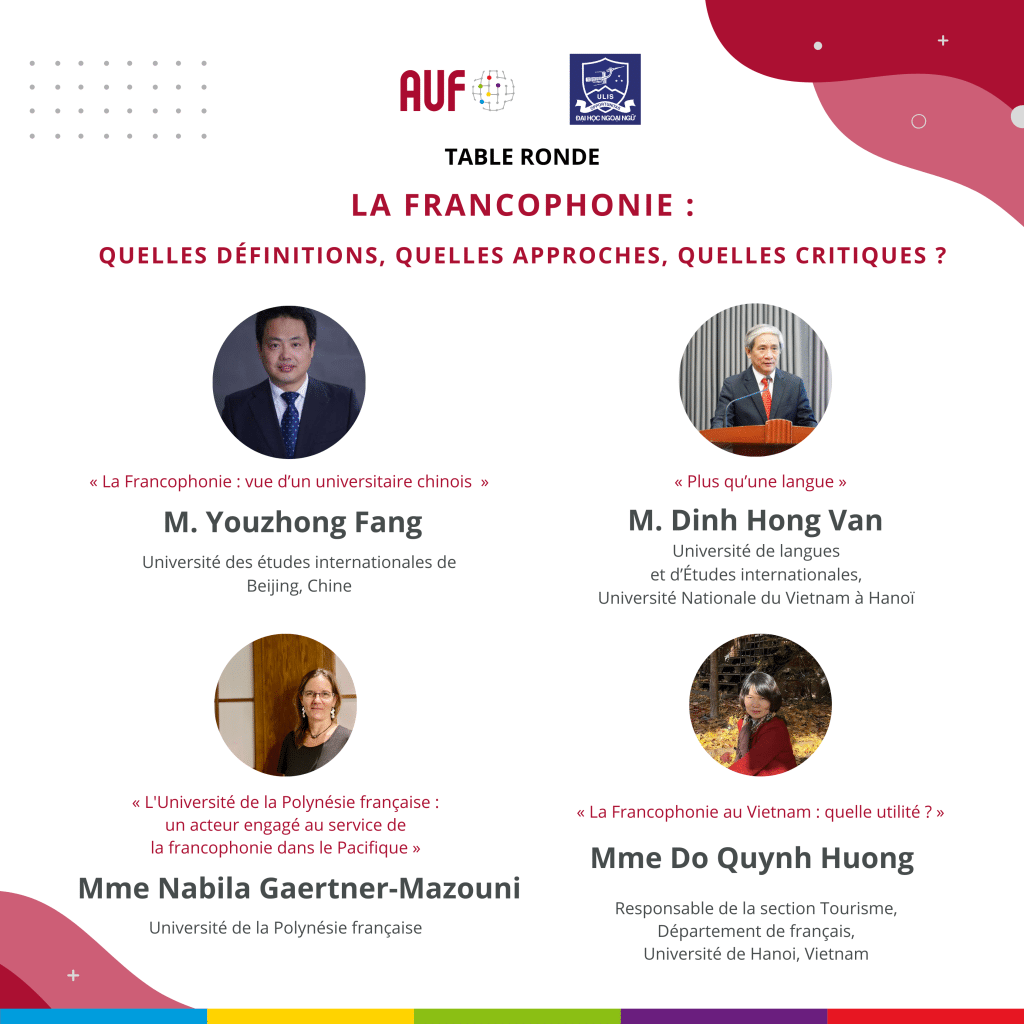 Cet événement, organisé conjointement par l’Université de Langues et d’Études Internationales et l’AUF Asie-Pacifique, s’est déroulé le mercredi 24 avril dans un format hybride.