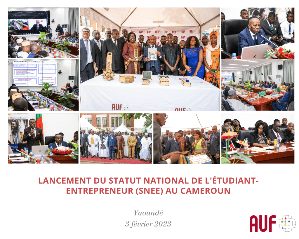 Le 3 février 2023 à Yaoundé, le ministre camerounais de l’Enseignement supérieur, Jacques FAME NDONGO, a lancé officiellement le Statut National Étudiant-Entrepreneur (SNEE), en présence du Recteur de l’AUF, le Pr Slim KHALBOUS et des partenaires académiques, économiques et institutionnels.
