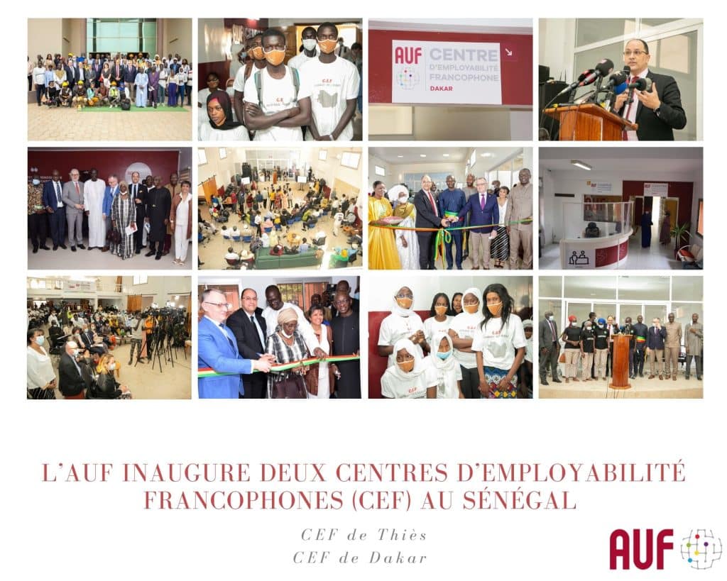 Les 17 et 18 février 2022, l’AUF a inauguré deux nouveaux Centres d’Employabilité Francophones (CEF) à Thiès et à Dakar, au Sénégal. Ces ouvertures se sont tenues en présence du Ministre roumain de l’Éducation, du Recteur de l’AUF et des membres du Conseil d’administration réunis à Dakar.