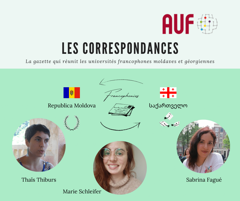 Dans le cadre du mois de la francophonie, les lectorats de FLE de République de Moldova et de Géorgie se sont associés pour mettre en place une plateforme de dialogue et d’échange entre les étudiants francophones des deux pays. Les lectrices de FLE ont proposé à leurs étudiants de composer ensemble un journal francophone dénommé les Correspondances.