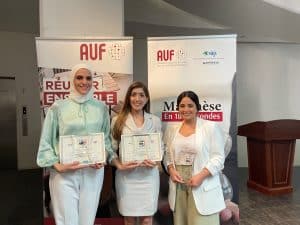 🥉Troisième Prix décerné par l’AUF – Maghreb : Projet « SOUNDEFY » des étudiantes entrepreneures Raoua Trimech, Fatma Laribi et Hadil Helali (INSAT) – Référents : Nawel Abdelmoula et Wajdi Ben Rejeb (INSAT) – Mentor : Amine Kammoun (Cleaver Tecnologies) 🎉
