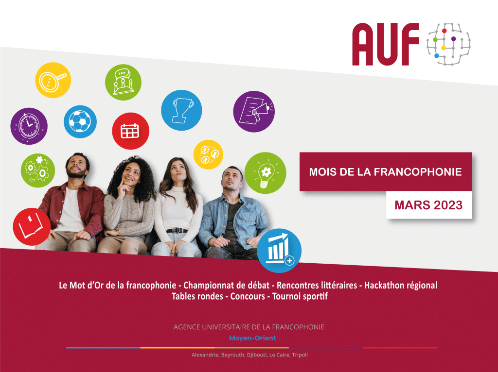 Le mois de mars marque la francophonie, célébrée partout au monde comme au Moyen-Orient, notamment à travers des activités culturelles et conviviales. L’Agence Universitaire de la Francophonie au Moyen-Orient s’associe comme chaque année à la célébration de ce temps fort de l’année par des activités destinées à tous les publics, notamment les jeunes.