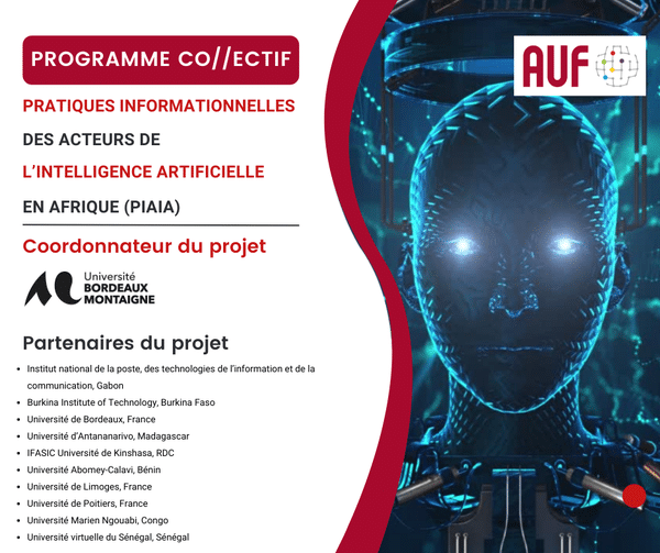 Le projet PIAIA vise, d’une part, à explorer les pratiques informationnelles des acteurs de l’intelligence artificielle en Afrique et, d’autre part, à comprendre les stratégies de veille d’informations, mais aussi de dissémination mises en place sur le terrain.