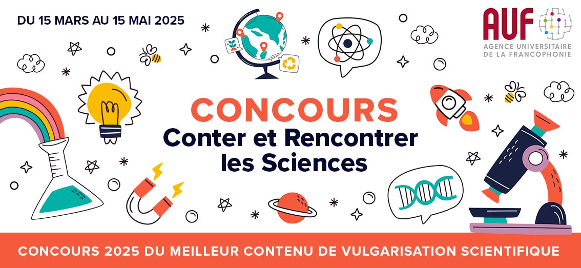 Le concours Conter et rencontrer les sciences est une initiative de l’AUF Europe Occidentale destinée à valoriser la production de contenus de vulgarisation scientifique en langue française par de jeunes chercheur·e·s. Il s’inscrit dans une perspective de rapprochement entre les sciences, la culture et la société, en encourageant des formats accessibles et créatifs (écrit, audio, vidéo, graphique).