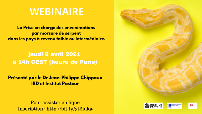 En savoir plusWebinaire Santé publique : “La Prise en charge des envenimations par morsure de serpent dans les pays à revenu faible ou intermédiaire.”, le 8 avril 2021