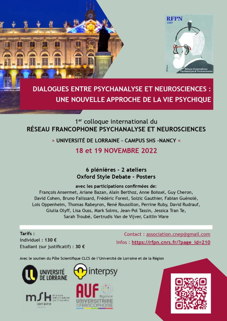 En savoir plusColloque International “Dialogues entre psychanalyse et neurosciences: une nouvelle approche de la vie psychique” – (17,) 18 & 19 novembre, Nancy