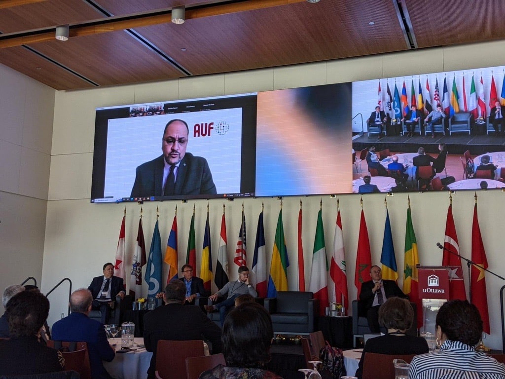 Le Recteur de l’Agence Universitaire de la Francophonie (AUF), Prof. Slim KHALBOUS, est intervenu à distance lors de la conférence inaugurale de la Rencontre annuelle du Réseau International des Chaires Senghor de la Francophonie (RICSF). Elle s’est déroulée du 11 au 13 octobre 2022 à l’université d’Ottawa au Canada.
