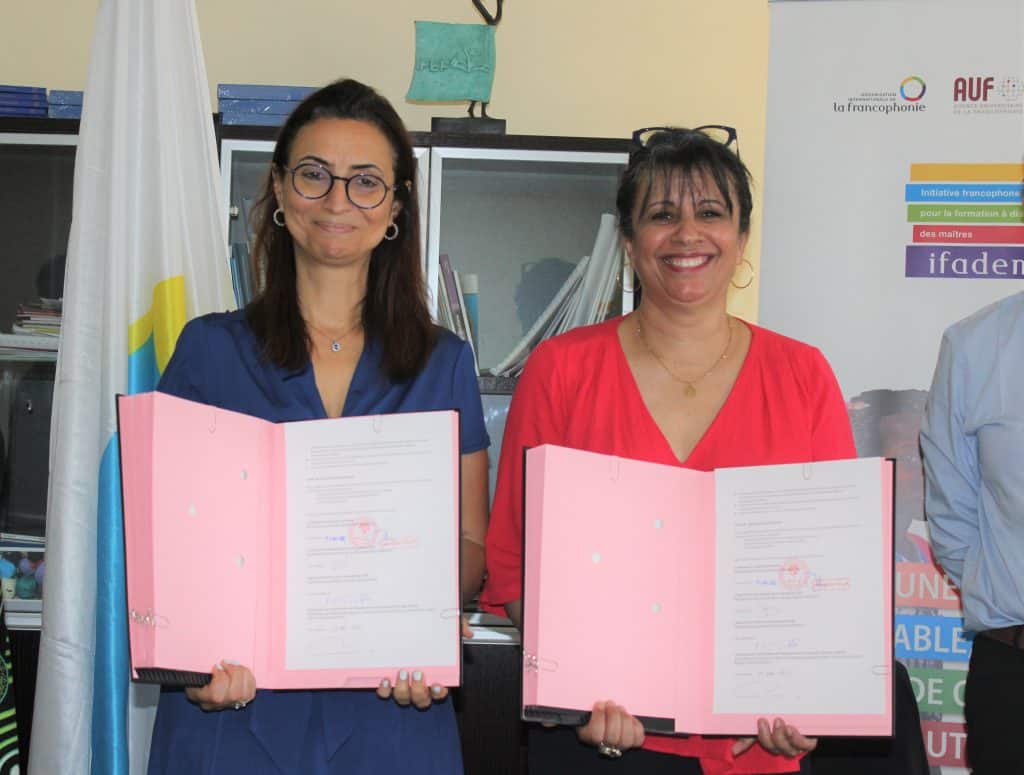 Faisant suite à la signature de la convention de partenariat du programme IFADEM, ce jeudi 19 mai 2022, par M. Mamadou TALLA, Ministre de l’Éducation nationale et M. Pierre-Yves JEHOLET, Ministre-Président de la Fédération Wallonie-Bruxelles (notamment en charge de la Francophonie et des relations internationales et Président de l’APEFE), Mme TEBBAA et Mme LAROUSSI, représentant respectivement l’Agence Universitaire de la Francophonie (AUF) et l’Organisation internationale de la Francophonie (OIF), ont entériné la signature de convention pour mettre en œuvre, les quatre prochaines années, le programme IFADEM au Sénégal.