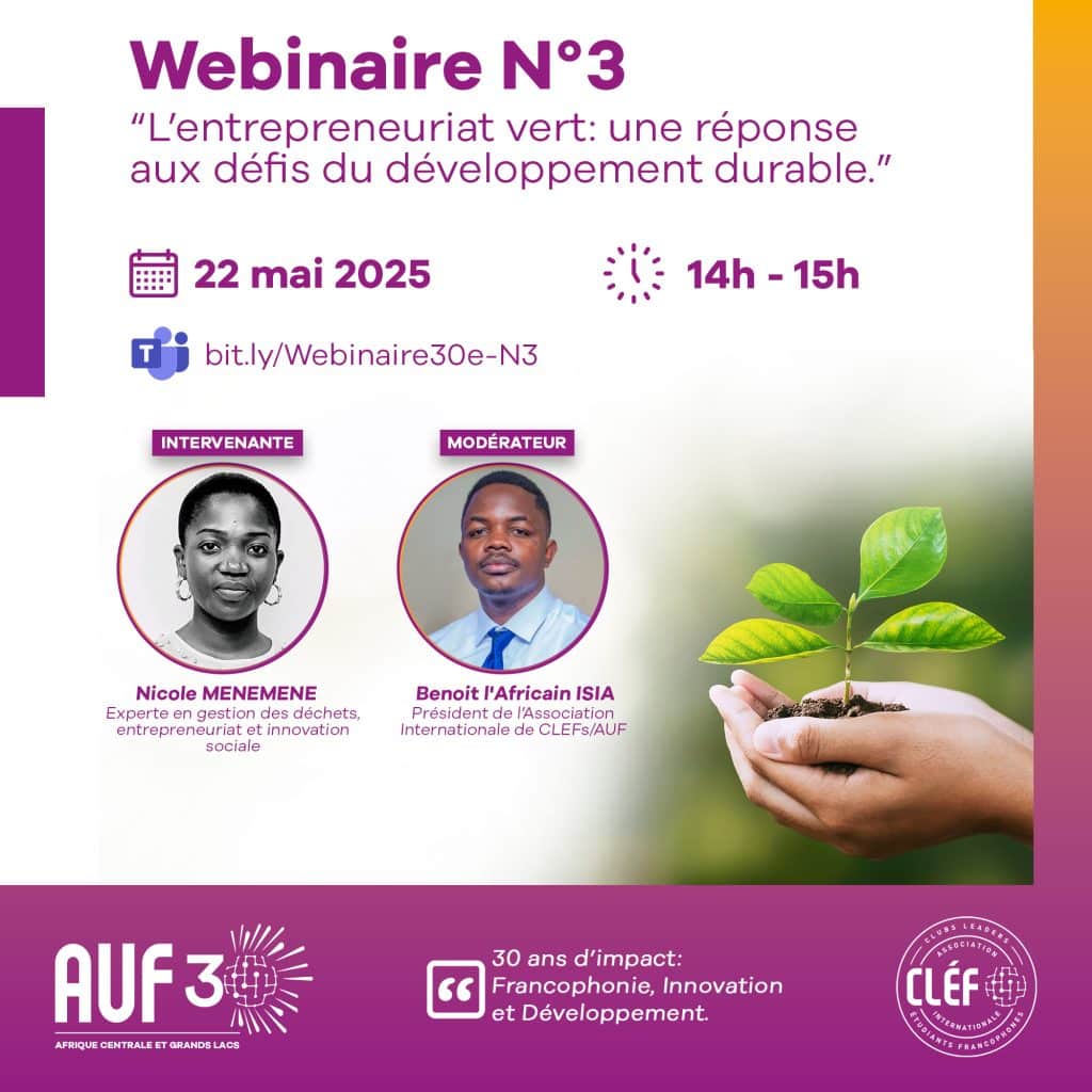 Avec pour thème « L’entrepreneuriat vert: une réponse aux défis du développement durable« , cette rencontre virtuelle a réuni près d’une cinquantaine de participants, des intervenants de choix pour un intérêt commun : l’environnement.
